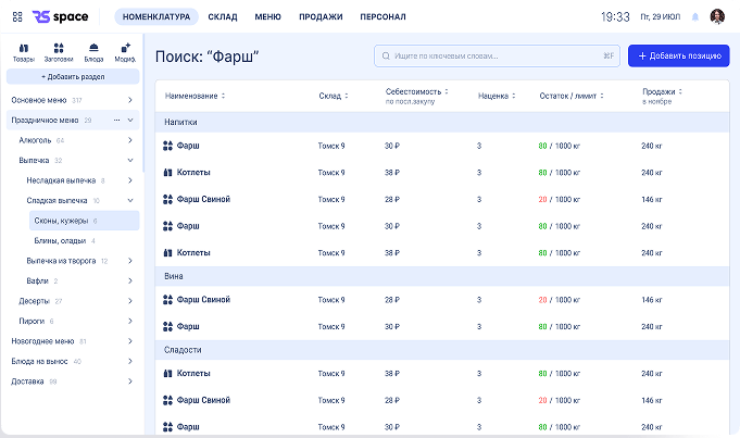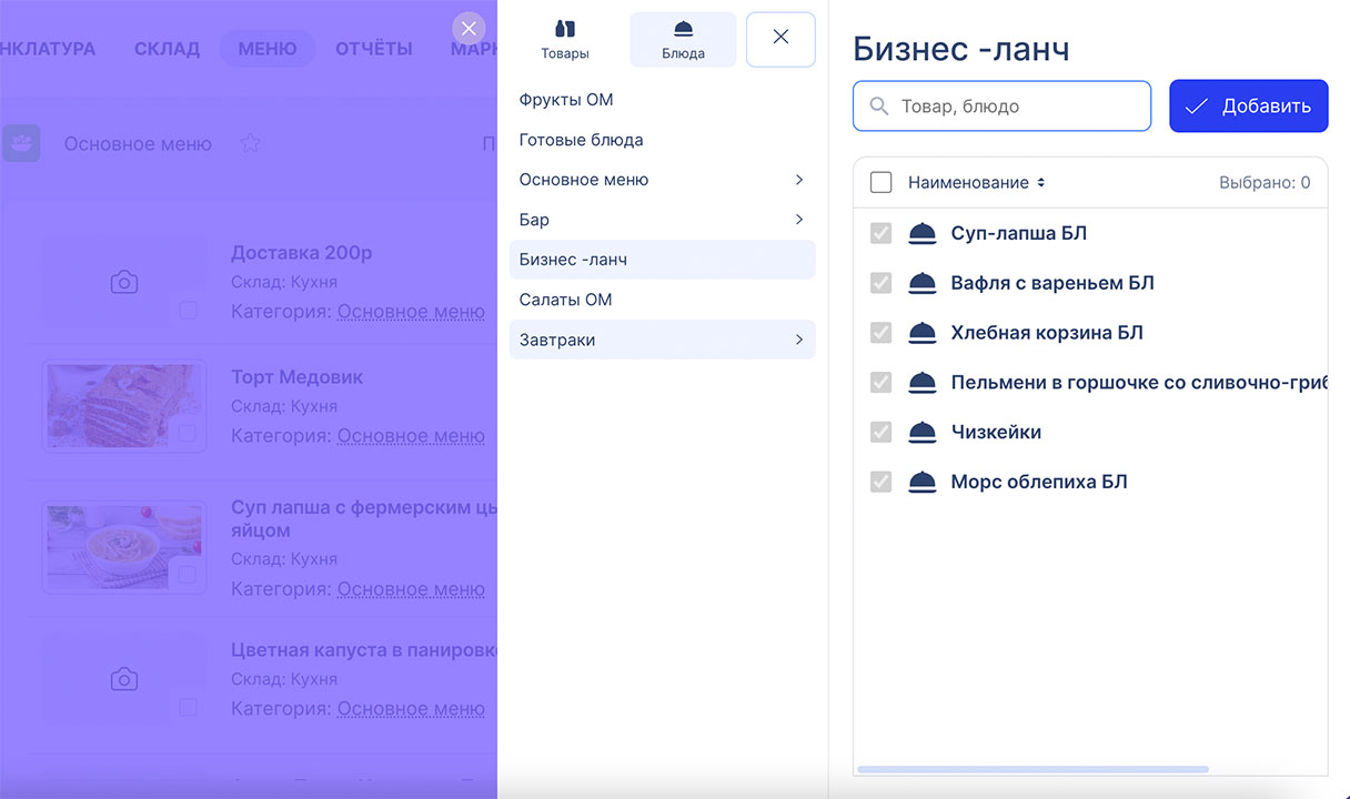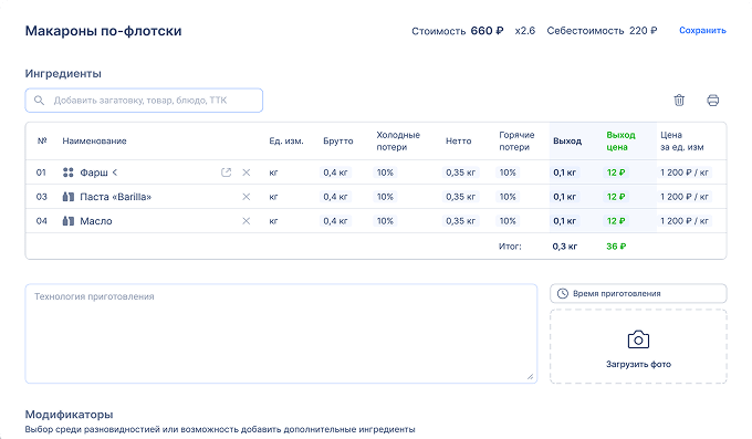 - Техкарты, модификаторы
