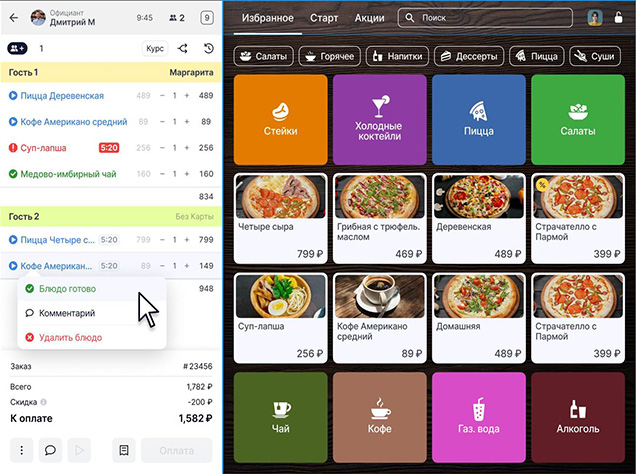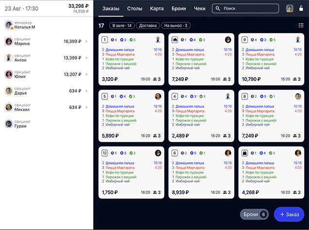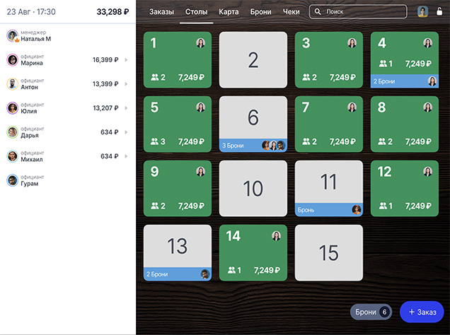 - Переносы заказов между столами